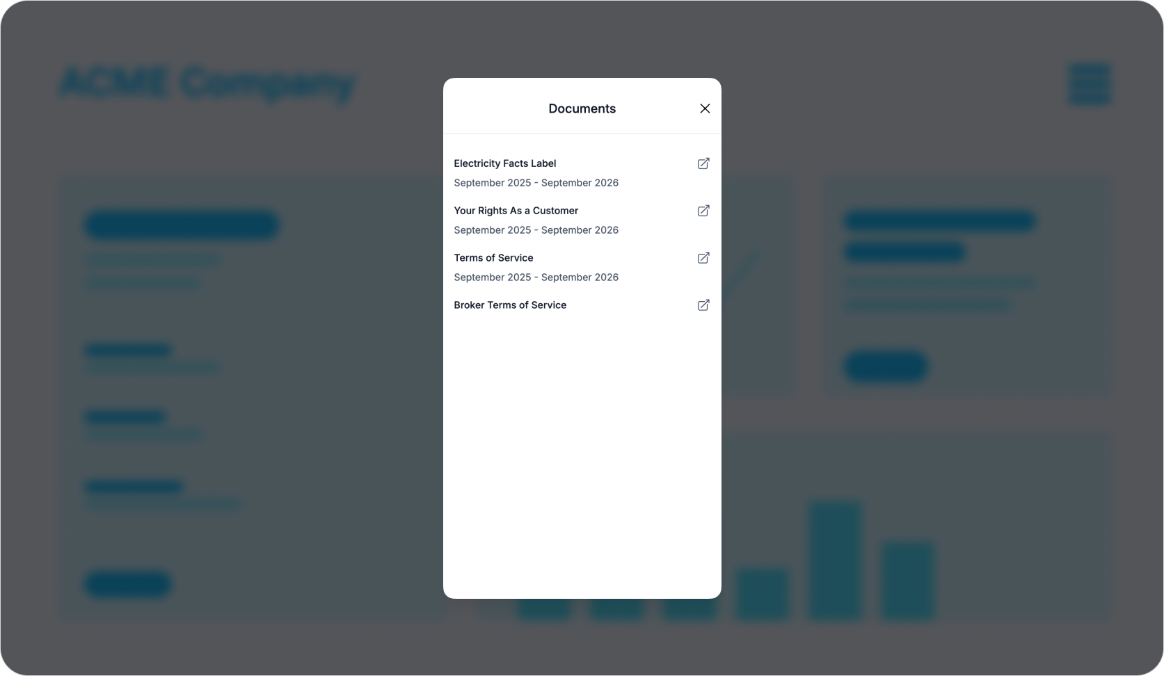 After enrollment, you will need to provide the customer with important documents related to their service. These documents include the Electricity Facts Label (EFL), Terms of Service (TOS), and Your Rights as a Customer (YRAC).